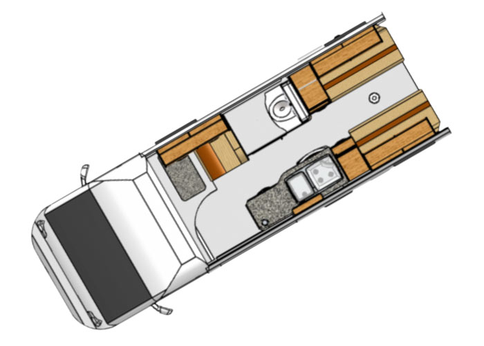Our Moto-Trek Leisure-Treka 2 berth motorhome is perfect for a couple seeking a spacious yet practical vehicle in a more campervan style.