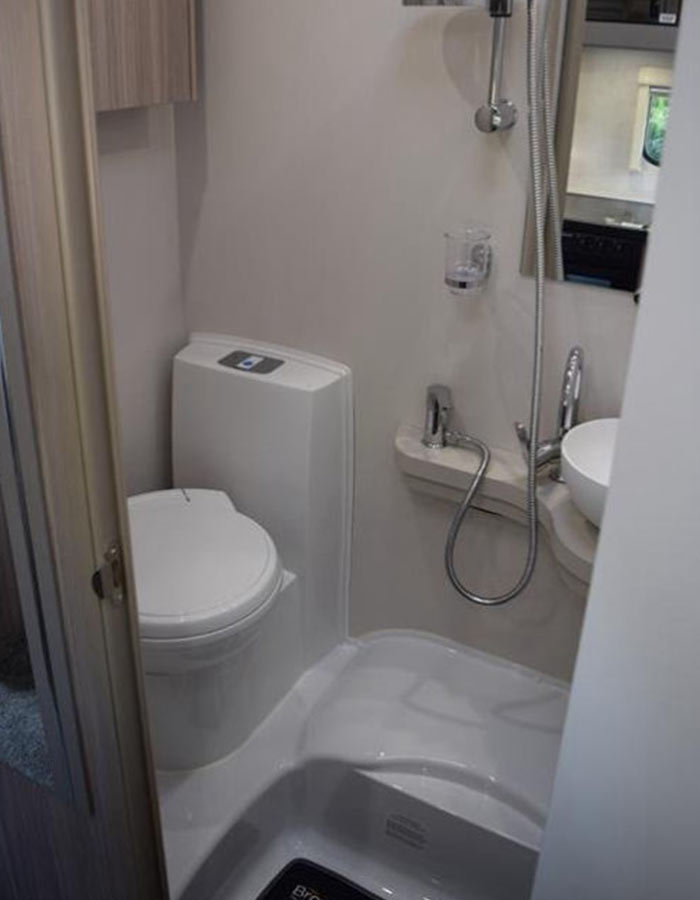 The Swift Edge has all the extras you would expect from a modern 6 berth luxury motorhome, including air conditioning in the cab, rear parking sensors, flat screen TV, fully fitted kitchen and sleek overhead lockers with ambient lighting for stylish storage. A fully equipped kitchen area provides cooking facilities including three ring gas hob, gas oven, microwave, sink and fridge freezer. The separate bathroom has a sink, vanity unit, flushing toilet and shower. Spacious seating area at the back of the motorhome converts to a double bed. Sleeping arrangements are provided by easily converting the dining seating into a double bed and lowering a double bed from the ceiling above the driving area.